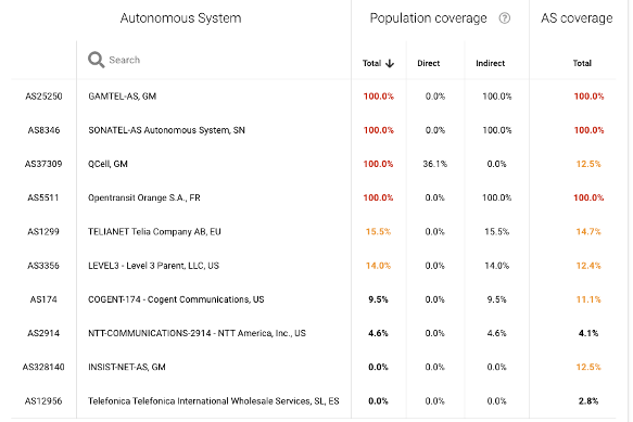 In terms of Internet transit, Gamtel and Sonatel, as well as Opentransit Orange, seem to be dominating the scene. To understand the dependency between networks, we used the AS Hegemony score from IIJ. The above three operators provide transit to all other Autonomous System Numbers (ASNs) in the Gambia. With the ACE cable under repair, the Opentransit link (which is a Tier-1 operator) and which connects The Gambia to the Internet was not operational. The fallback link was therefore through Sonatel, which is also a transit provider for all ASNs in the Gambia. The fault on the only operational Sonatel link on 4 January, as expected, brought down Internet connectivity for the whole country.