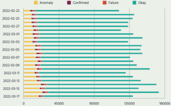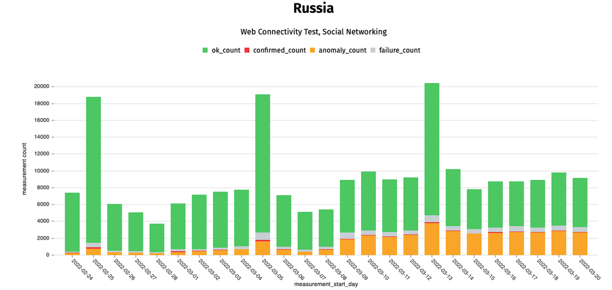 It has also recently emerged that a court in Russia has determined that Meta, the newly formed parent company of Facebook, is engaging in “extremist” activities and the blocking of Facebook and Instagram continues. This will likely have an impact on the OONI data and the number of anomalies that we are seeing on networks. This should be visible in a few days. We will provide more information as we are able to collect it on this.