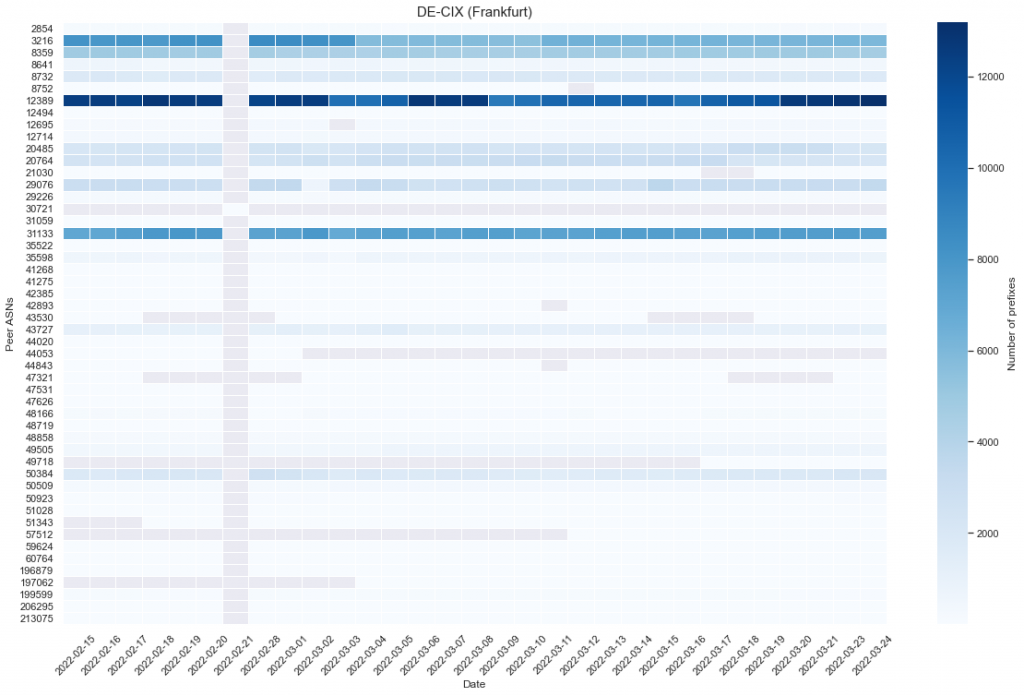 The reduction in the number of routes advertised by Vimpelcom was also noticed at DE-CIX a bit later on 3 March, 2022.