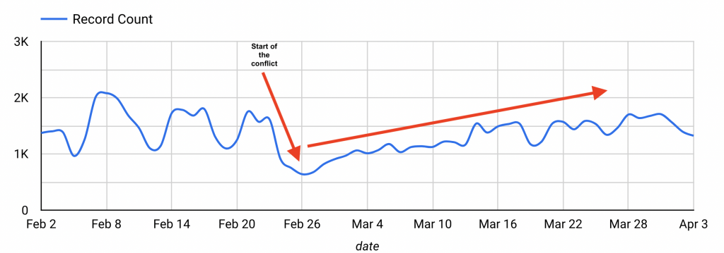 Alongside this, the Pulse team has also been looking at what is happening to critical Internet infrastructure in both Russia and Ukraine from various different angles.
