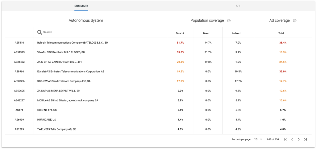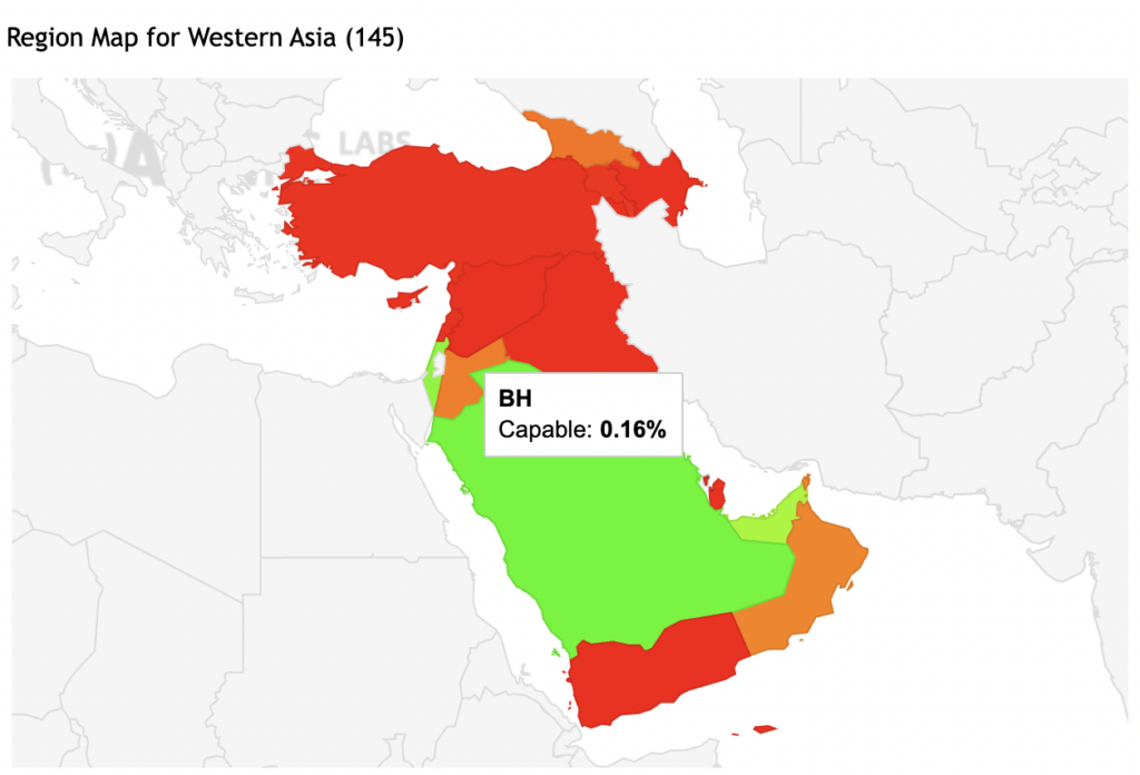 Finally, APNIC Labs—another Pulse partner—provides another data source for measuring IPv6 adoption at a global, regional, country, and network level. Like Google and Facebook, IPv6 adoption in Bahrain is nearly non-existent as per its source with only 0.16% of 240,000 website visits delivered by IPv6.