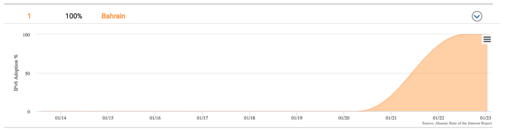 The stat was ‘confirmed’ in the Akamai report, which shows Bahrain as the only country with 100% IPv6 coverage.