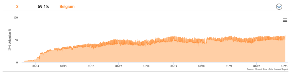 Figure 4 — IPv6 growth in Belgium. Source: Akamai.