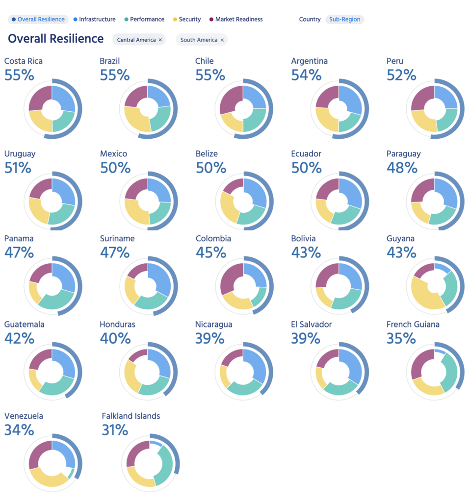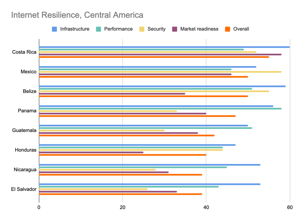 Looking at its Internet Resilience Index score, it’s no surprise it also leads its Central American and South American neighbors.