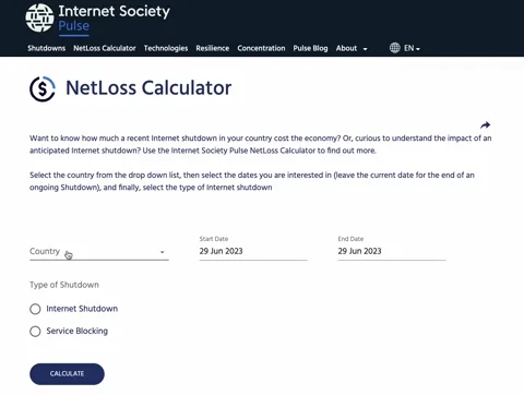 The Pulse Shutdowns tracker maps ongoing and past Internet shutdowns across the world. It shows detailed information on each shutdown event, such as which online services and regions are affected.