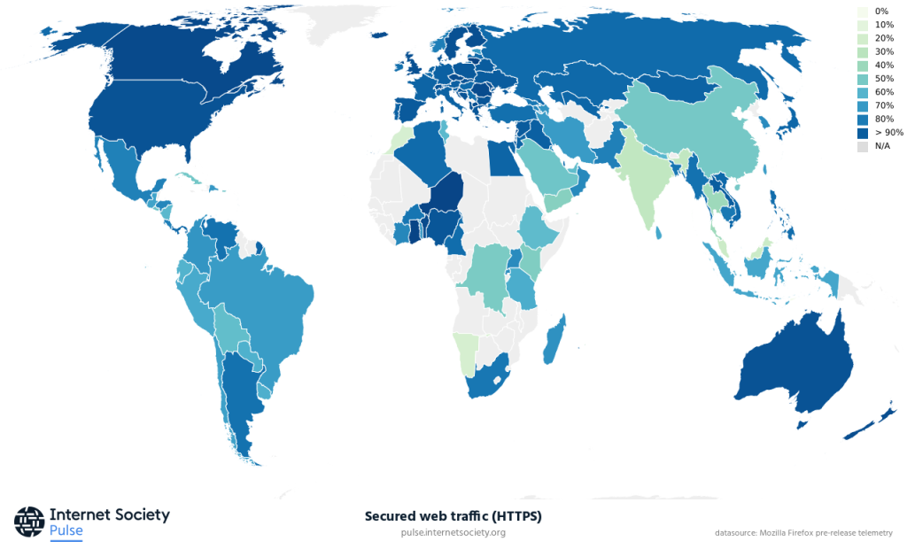 The Pulse platform shows you the level of HTTPS and TLS uptake in your country – a high rate helps assure that local services can be trusted to handle online transactions securely.