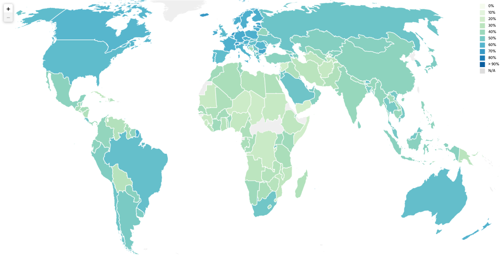 World map with countries colored in depending on their resilience score.