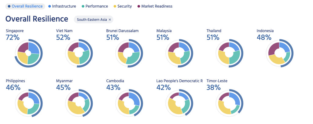 Donut charts showing the resiliency for each country in South East Asia