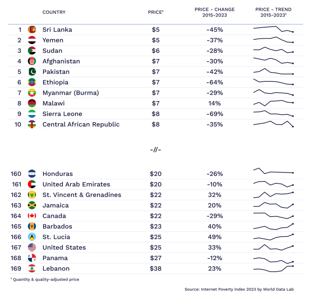 A Universal Decline in Prices has Driven the Reduction in Internet Poverty.