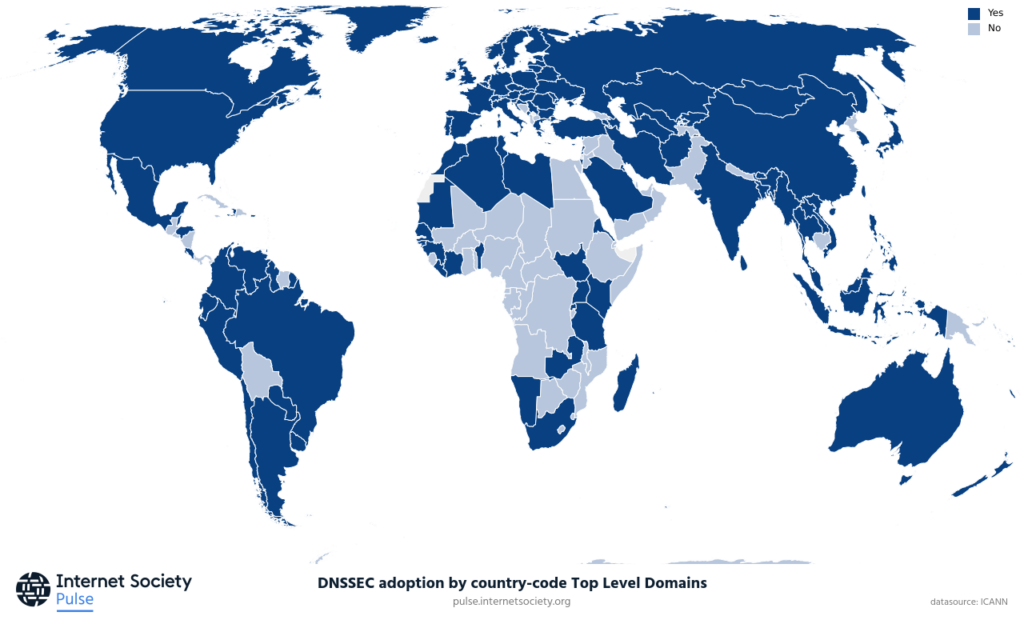 Figure 1 — As of January 2024, 158 countries have DNSSEC-enabled ccTLD. Source: Pulse.