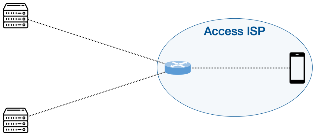 - First, it simultaneously replays Wehe’s traces over two network paths that start at different servers, end at the client, and converge exactly once within the access ISP (Figure 2). The two paths need to converge only within the access ISP so that the access ISP can not share the blame with any other ISP. As you can see in Figure 2, this pair of paths forms a “Y” topology, giving rise to the name of our system: Wehe+Y, or WeHeY for short.