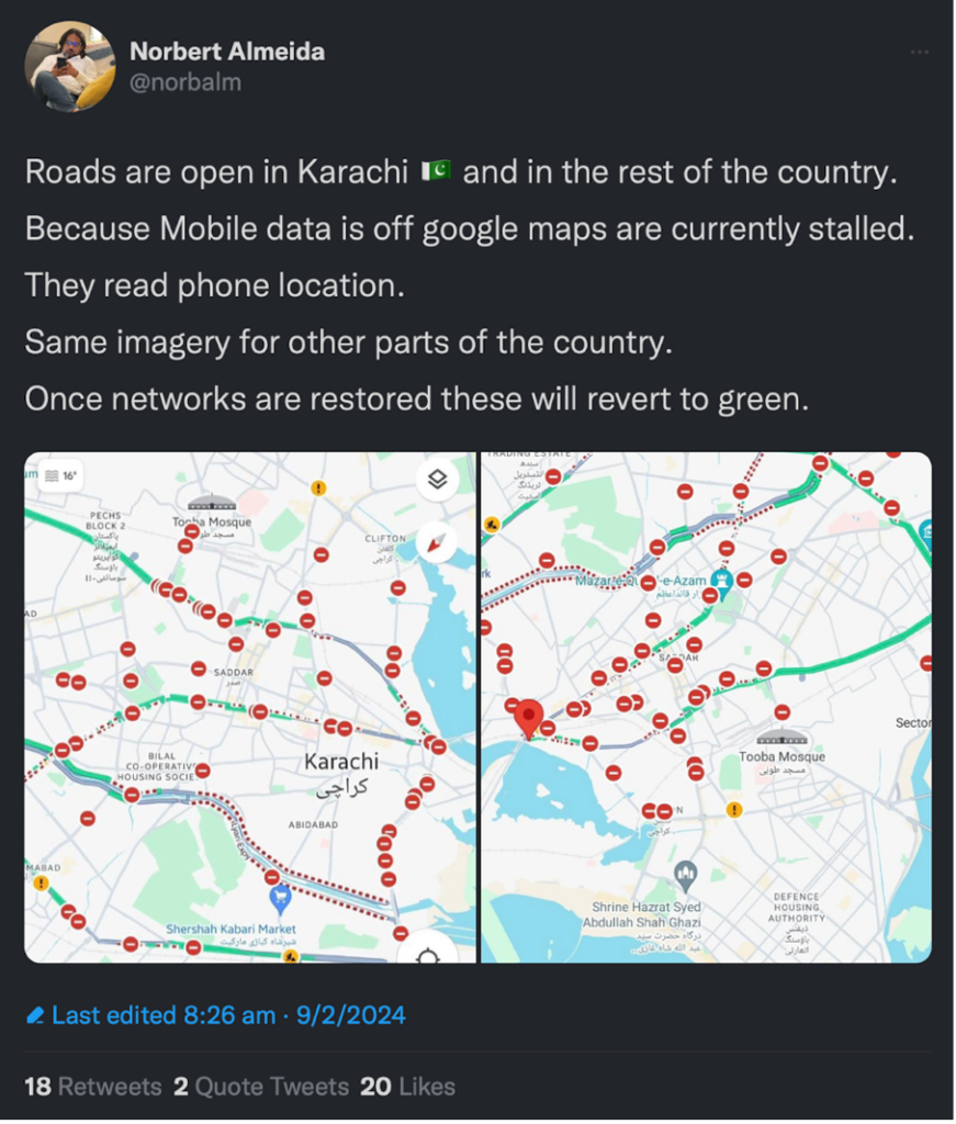 On the morning of 8 February, one X user noted that Google Maps was showing road blockages in Karachi even though the roads were open.