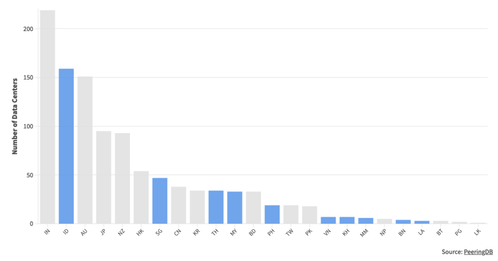 According to PeeringDB, Thailand has 34 data centers serving its ~72 million inhabitants. In comparison, Singapore, with a population of ~6 million, has 47 data centers.