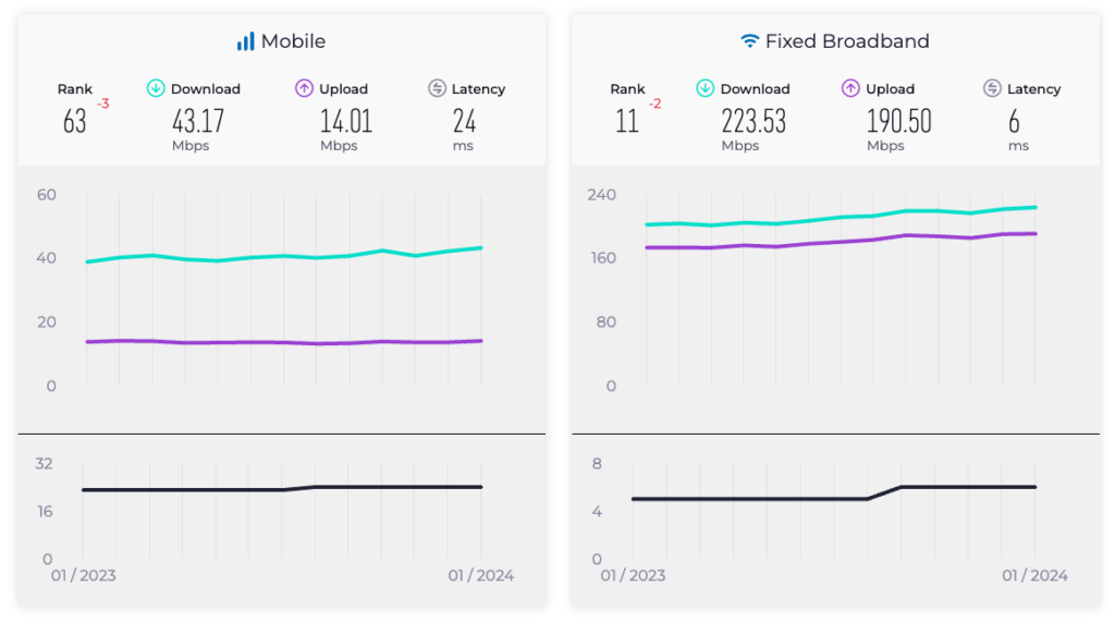 The result of this and other ‘fixed-focused’ strategies has seen Thailand’s fixed broadband performance rise from 34th in 2018 to 11th (as of January 2024) globally, and the number of households with fixed broadband increase from 12.79M subscribers in 2016 to 21.34M in 2022.