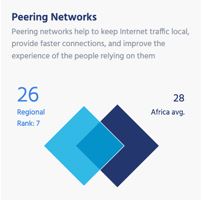 Peering Networks is a measure of networks that peer at (interconnect with) IXPs in each country. More networks that interconnect with IXPs/one another improve redundancy, latency, and overall experience.