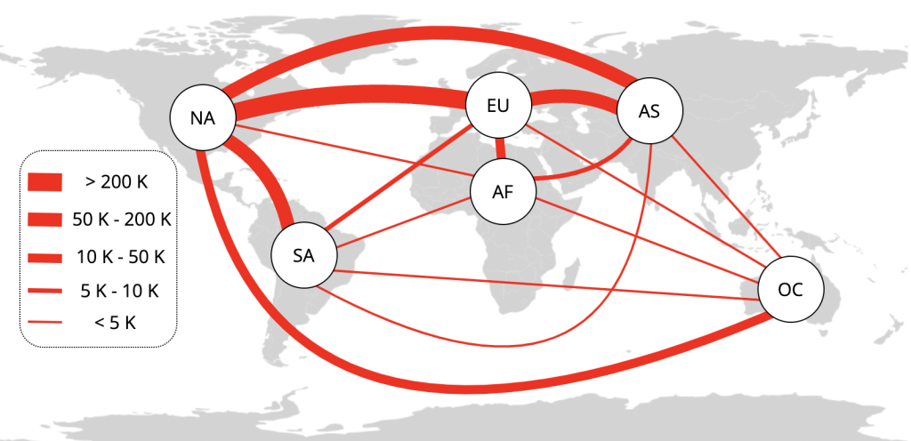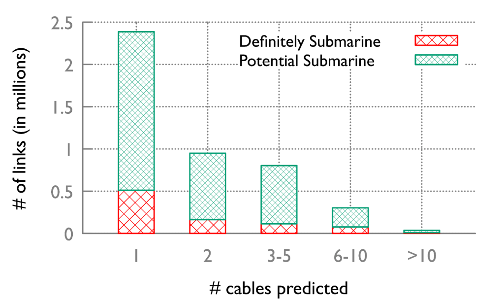 Figure 3 below illustrates the intercontinental distribution of definitely submarine IPv4 links.
