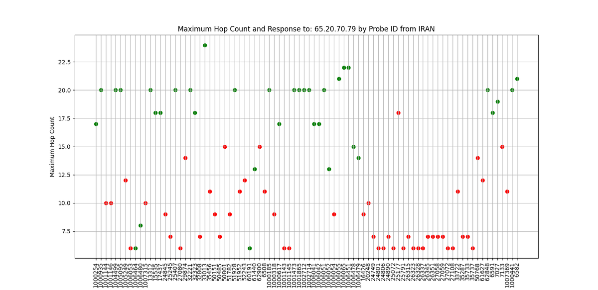 Pulse researchers validated anomalies connecting to Iran via SSH (port 22) from Sydney, Australia, and Mumbai, India, with more than half of the probes unable to connect (Figure 4a,b).