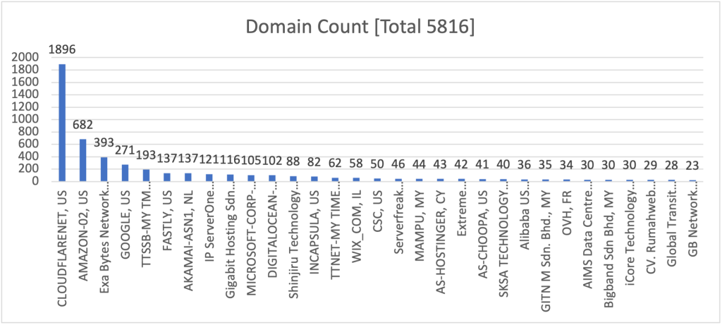 Upon examining the top websites in Malaysia (as ranked by Tranco), we can see that the majority (n=1,896) are served by Cloudflare servers, most of which are cached locally (Figure 5).