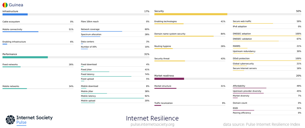 Screenshot of Guinea's Internet Resilience Index profile.