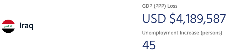 According to the Pulse NetLoss calculator, every 24 hours that the Internet is shut down in Iraq results in around USD 4.2 million losses in Gross Domestic Product and around 45 job losses. This also hinders international business trust in the Iraqi telecommunication infrastructure.