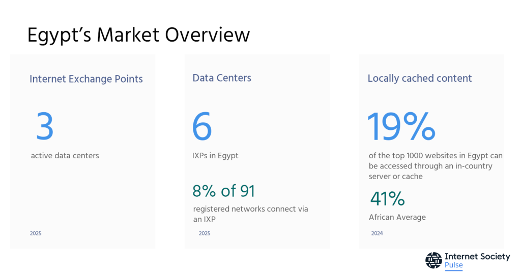 Another important aspect of this event to consider is the importance of data centers and Internet Exchange Points (IXPs) serving local content. According to PeeringDB data, Egypt currently has three IXPs, including Ramses Internet Exchange, and six data centers.