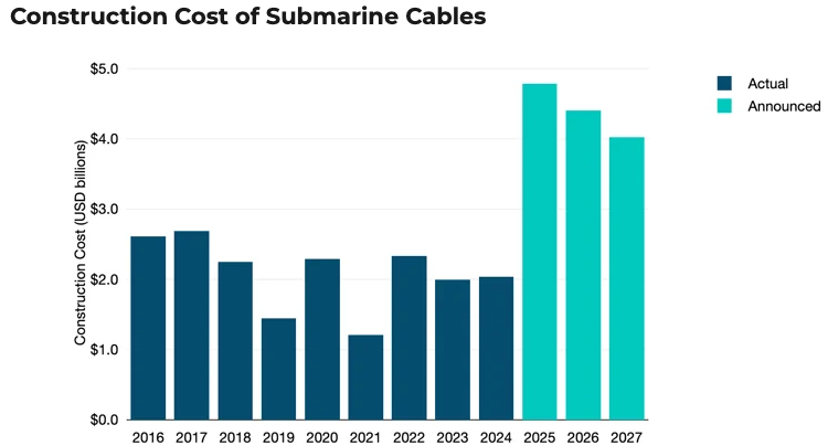 Until 2020, the subsea cable market was around USD 2 billion annually. During COVID times, it doubled to USD 4 billion annually; in 2025, it is expected to be between USD 5-6 billion!