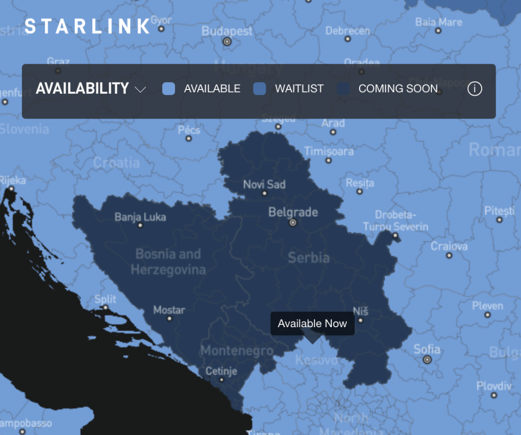 2a0d:3344:3840::/42,AL,AL-07,Kukes,Starlink announced the activation of its service in Kosovo on 21 December 2024. Despite the previous use of the Serbia-friendly “RS-KM” region code, Starlink’s Availability Map differentiates Kosovo (marked as “Available Now”) from Serbia (marked as “Starting in 2025”), as shown in Figure 4.