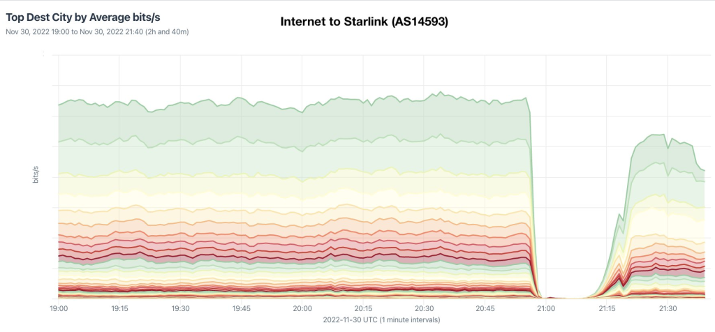 Near the end of November 2022, Starlink suffered a platform-wide outage. Although the outage lasted under two hours, the restoration of service coincided with the publication of a significantly different IP geolocation file, which included numerous new entries.