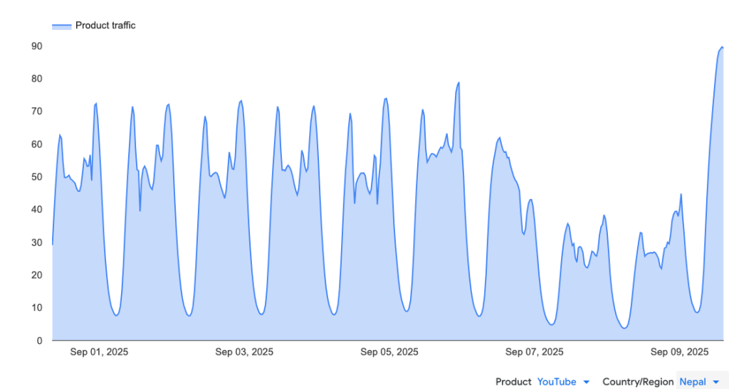 To be clear, we cannot verify whether these recent connectivity disruptions are due to actions of the Nepal government, or due to network outages, or excessive traffic. (Read more: BBC Live)