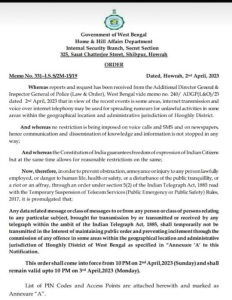 Internet services were suspended in West Bengal on 02 April 2023.