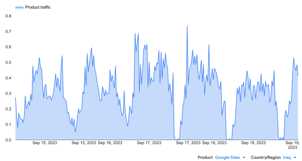 Measurements from the Internet Outage Detection and Analysis (IODA) project at Georgia Tech show the third shutdown on 19 September following a similar pattern to the previous shutdowns, beginning at 01:00 and ending at 04:00 (UTC). The shutdown is visible on Cloudflare Radar, IODA graphs, and Google Transparency Report, as detailed in the graphs below.