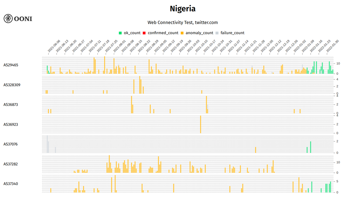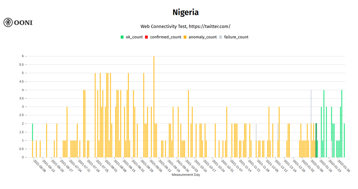 Overall, OONI data provides a strong signal of Twitter blocking in Nigeria during the reported 7-month ban because: