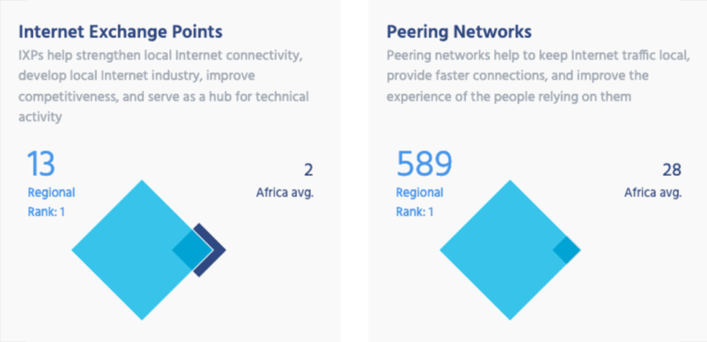 Un autre pays du top 10, l'Afrique du Sud, compte plus de 50 % de ses réseaux en tant que membres d'un IXP dans le pays. En outre, l'Afrique du Sud est le premier pays du continent à héberger du contenu localement. Plus de 70 % des 1 000 sites web les plus populaires localement sont hébergés en Afrique du Sud (voir notre nouvelle mesure de la localité du contenu populaire dans notre rapport sur l'Afrique du Sud). Cela signifie qu'en cas de coupure des câbles sous-marins, comme ce fut le cas le mois dernier, l'infrastructure sud-africaine est bien adaptée pour gérer localement la majeure partie du trafic Internet.